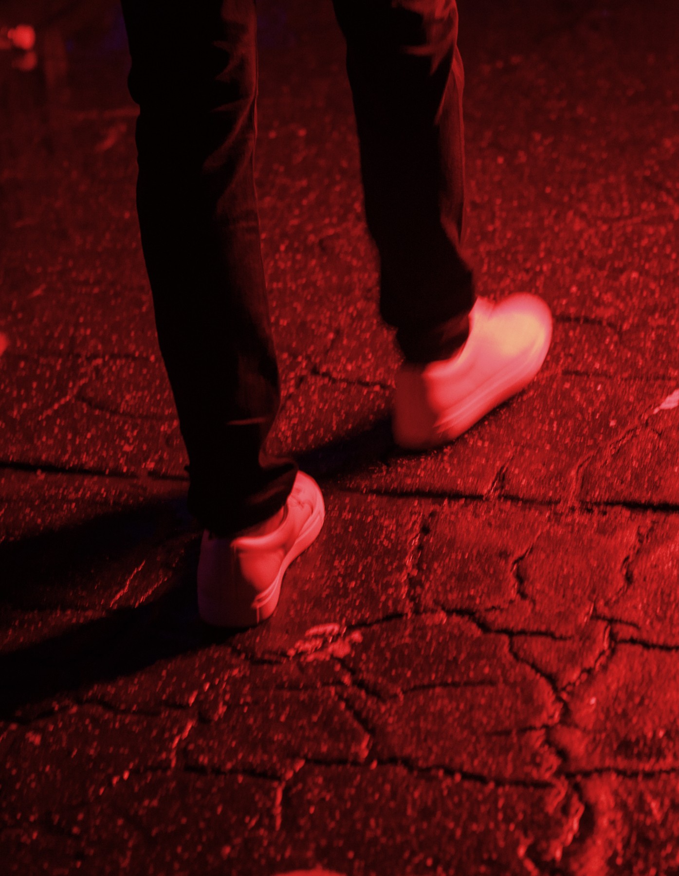 The identity I created captures the solitary mood of urban nights, with a logomark subtly emerging from negative space, evoking cityscapes or road markings. Inspired by neon lights in misty, dark alleys, black serves as the foundation, accented by blue and red to create contrast and tension.